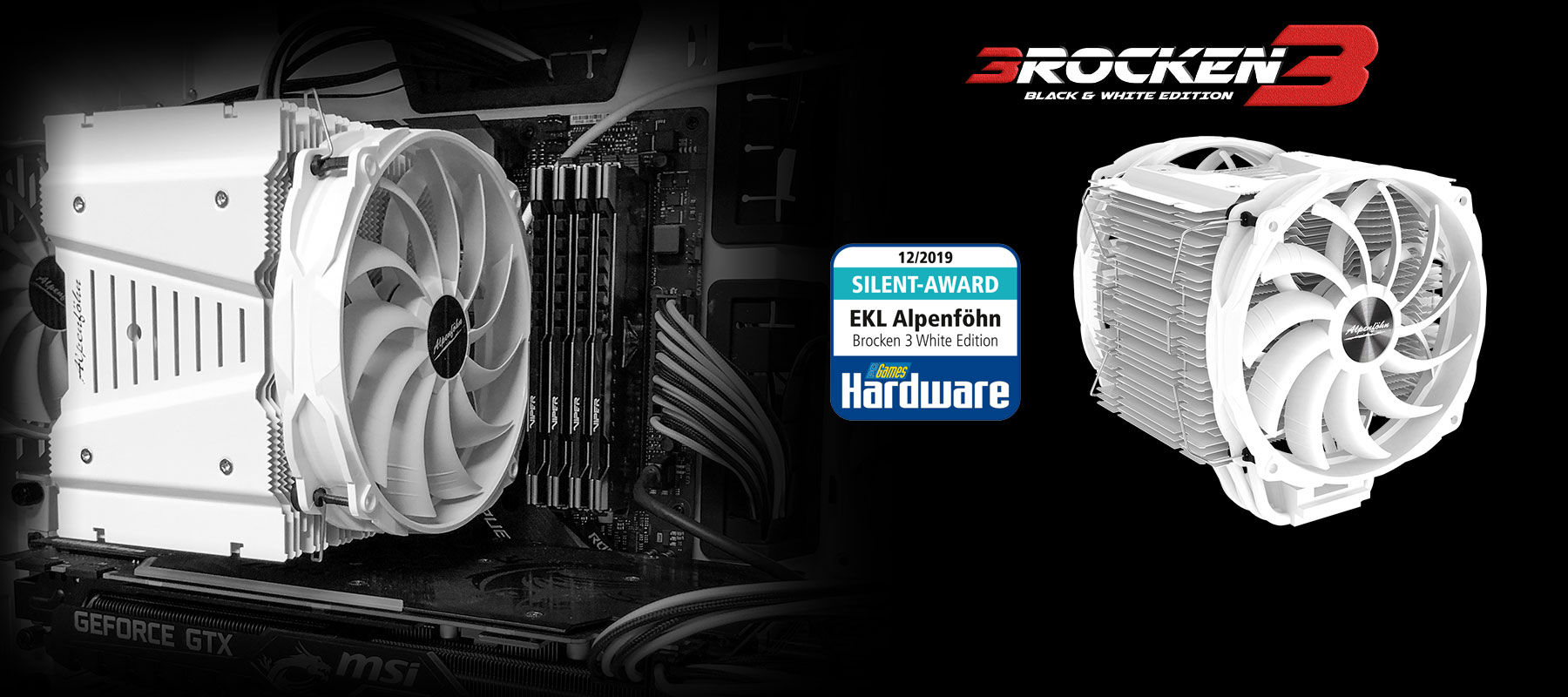 Brocken 3 White Edition 01Grand dissipateur de surface et enduit blanc avec un espacement des ailettes conçu pour un fonctionnement silencieux en combinaison avec des ailettes optimisées du point de vue aérodynamique - Brocken 3 comprend le meilleur des deux générations de «Brocken» qui leur permettent d'atteindre un nouveau niveau de performance!